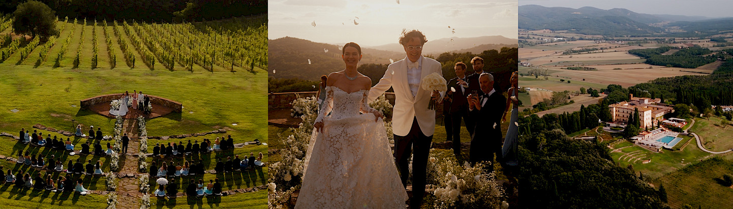 We film weddings in some of the most iconic locations in Europe, including Tuscany, Lake Como, the Amalfi Coast, the French Riviera, Barcelona, Venice, and beyond. Whether you are planning a luxury wedding, a destination elopement, or a romantic wedding abroad, our goal is to create a cinematic wedding film that preserves the emotions of your day for a lifetime.